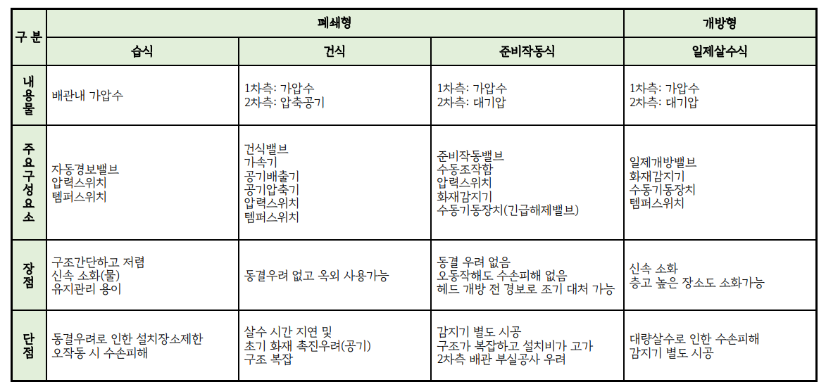 그 외에도 화재분류와 스프링클러 설비 종류도 보기 쉽게 정리했으니 참고하세요.