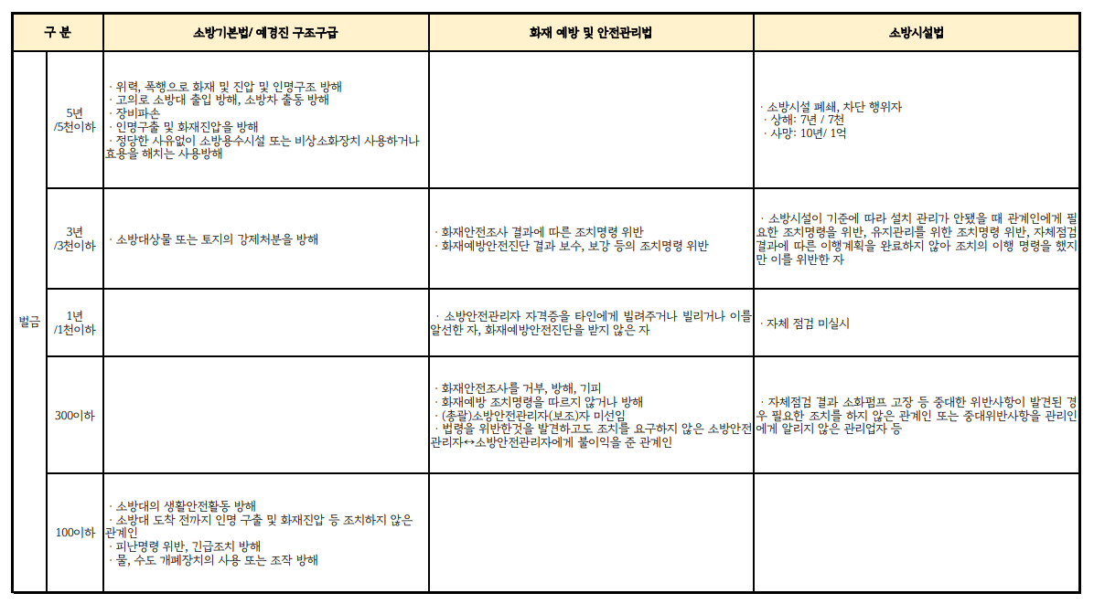 소방기봅법과 화재 예방 및 안전관리법, 소방시설법은 3단 비교 형식으로 만들어 벌금과 과태료를 암기하는데 도움이 되도록 만들었습니다.